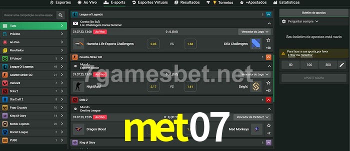 A aposta met07 oferece aos jogadores a experiência mais conveniente de apostas em eSports!